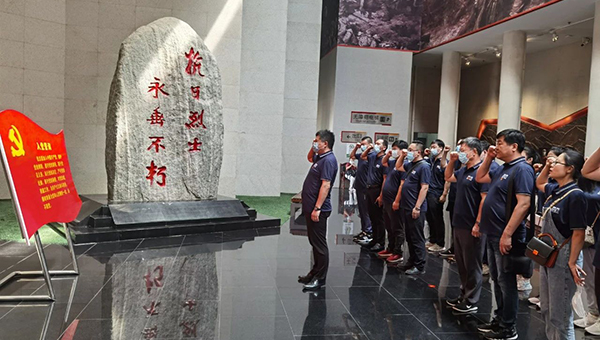參觀完畢后,公司董事長、黨支部書記劉之明帶領(lǐng)大家在紀念館大廳舉行重溫入黨誓詞、宣誓儀式。黨支部成員高舉右拳,面對黨旗再一次莊重地作出自己對黨的莊嚴承諾。